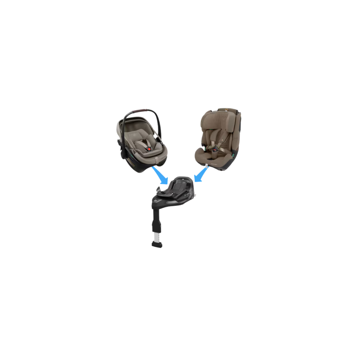 For Infants: You attach car seats from the 0-13 kg group (e.g., Pebble 360 Pro or the modular Coral Slide Pro).