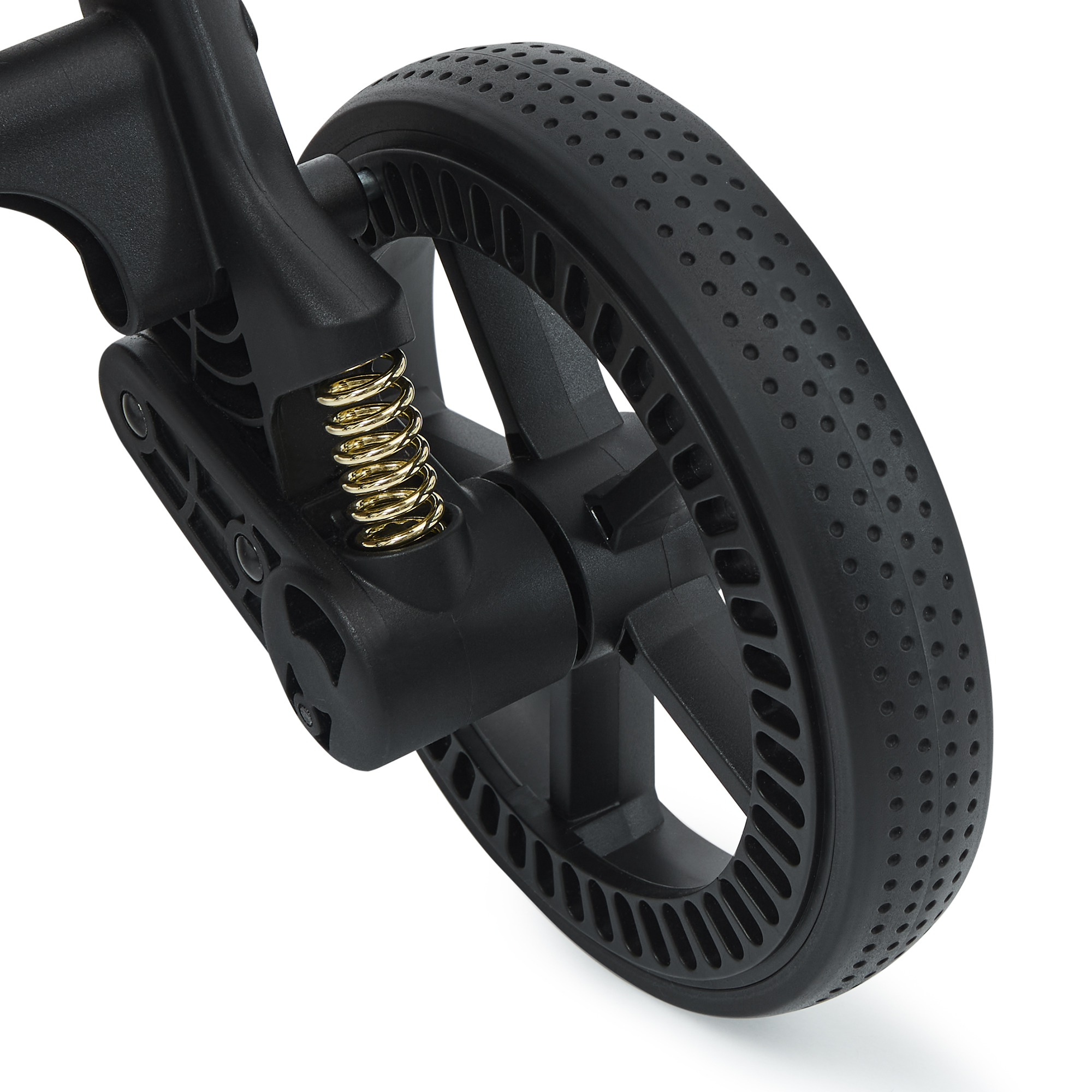 - Niezawodna amortyzacja - Wytrzymałe, bezobsługowe koła PU z zaawansowaną amortyzacją gwarantują płynne prowadzenie w każdych warunkach – od miejskiego bruku po nierówne leśne ścieżki.