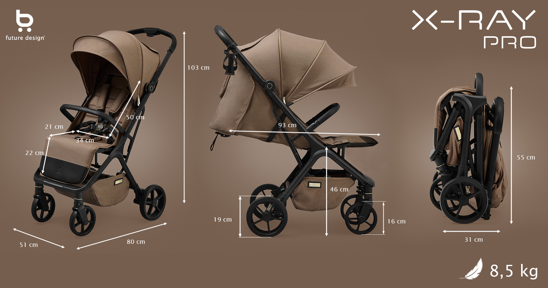 X-RAY PRO to najnowsza odsłona znanego i cenionego modelu spacerówki, stworzona z myślą o aktywnych, nowoczesnych rodzinach. Dzięki udoskonalonej konstrukcji, większym kołom oraz innowacyjnym rozwiązaniom, wózek sprawdza się zarówno w miejskich przestrzeniach, jak i na bardziej wymagających terenach. Zaprojektowany z myślą o rodzicach poszukujących niezawodnych i estetycznych rozwiązań, łączy wygodę użytkowania z bezpieczeństwem dziecka. X-RAY PRO wyróżnia się stylowym designem, praktycznymi funkcjami oraz wysoką jakością wykonania, co czyni go idealnym wyborem zarówno na co dzień, jak i w trakcie podróży.